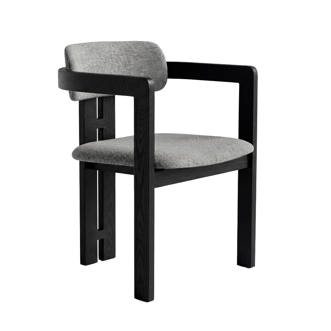 Silla con asiento, respaldo tapizado y estructura de madera de fresno